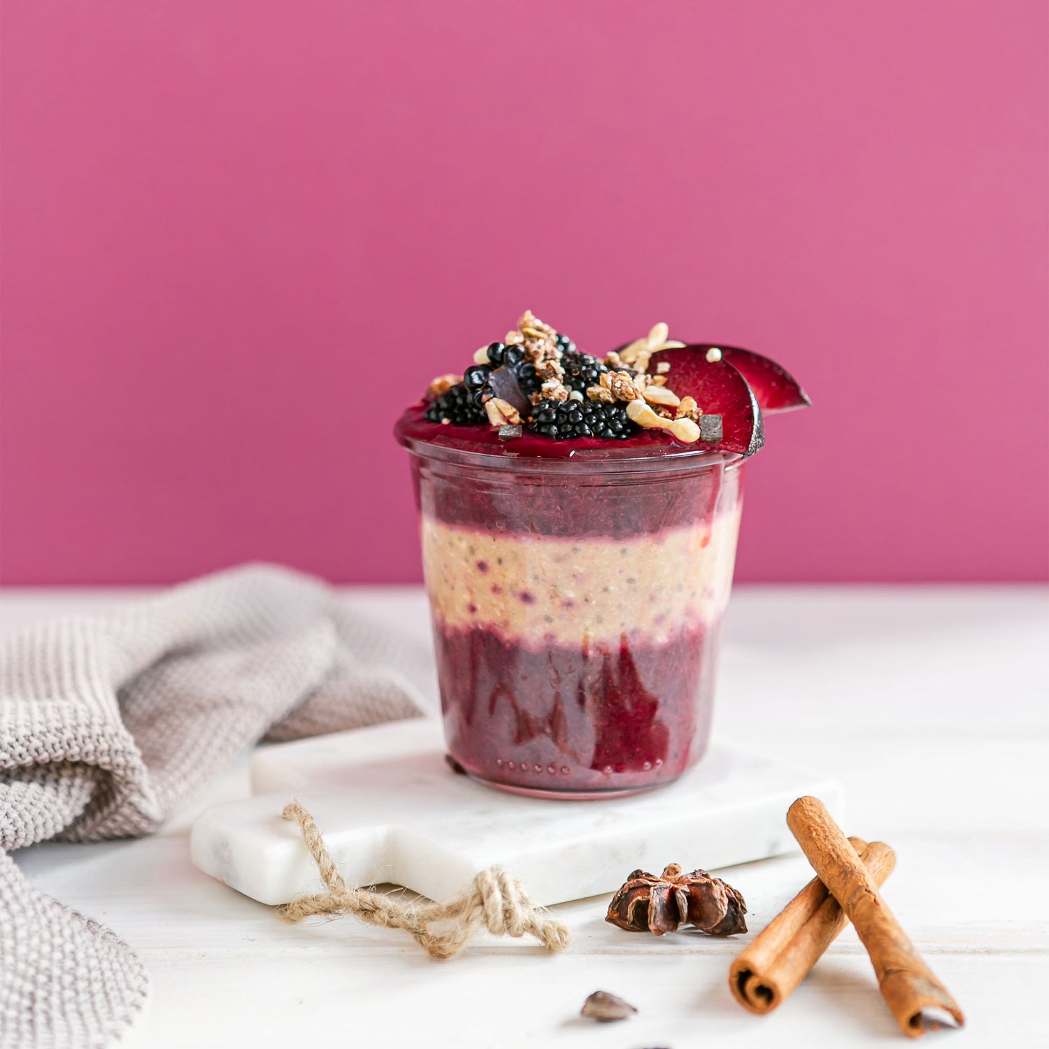 Löffel dich zusammen mit Chai Pflaume in deinen Wohlfühlmoment am Morgen. Süß-säuerliche Pflaume und intensive Chai-Gewürze machen ihn zu einem gemütlich-leckeren Genuss, fast wie ein fruchtiger Chai Latte zum Löffeln. Ganz nach dem Motto: Nur die Liebe zählt… und der Geschmack! Also worauf wartest du? Fall in love!