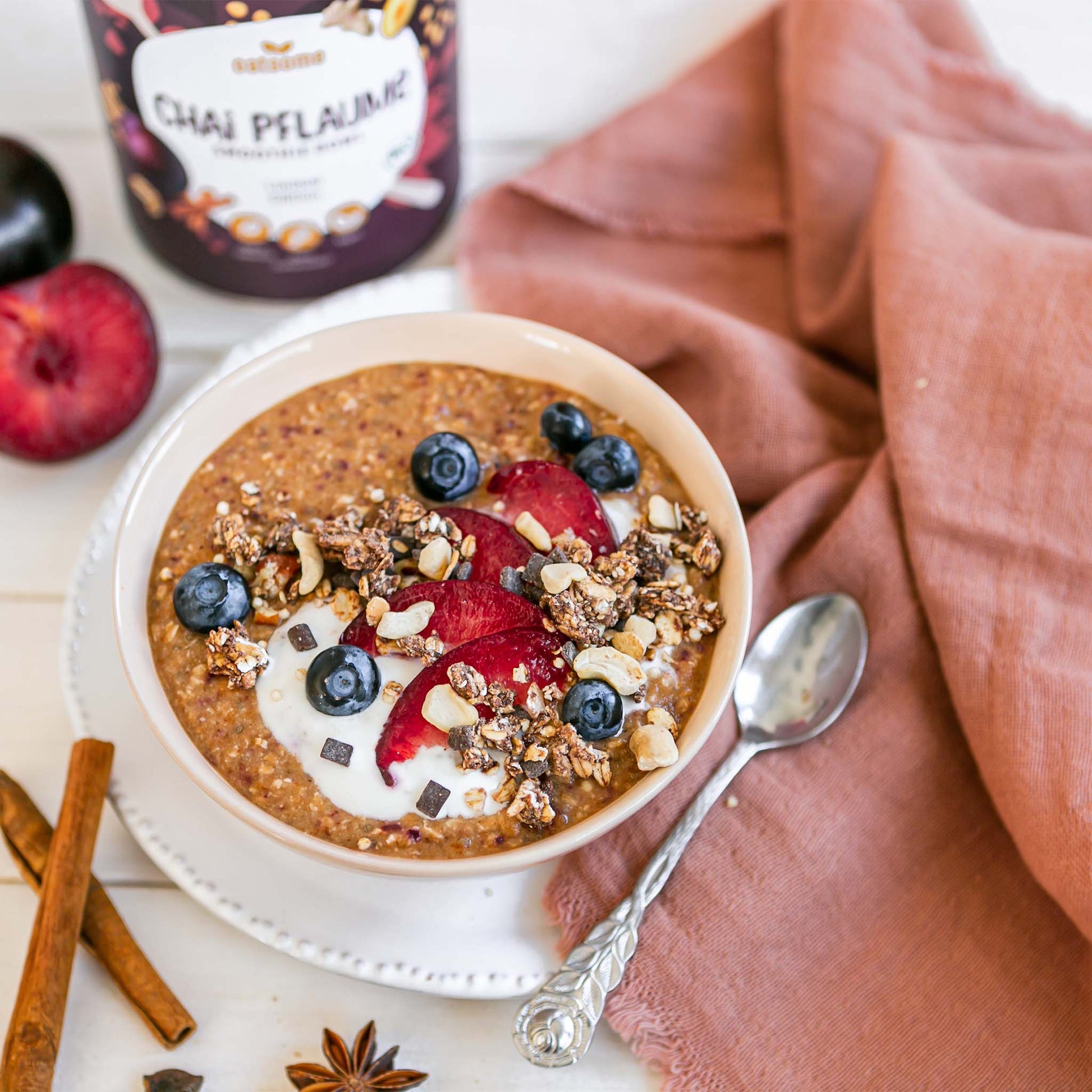 Mit intensiven Chai-Gewürzen wie Zimt, Kardamom und Nelke bringt Chai Pflaume den Herbst in jede Schüssel!